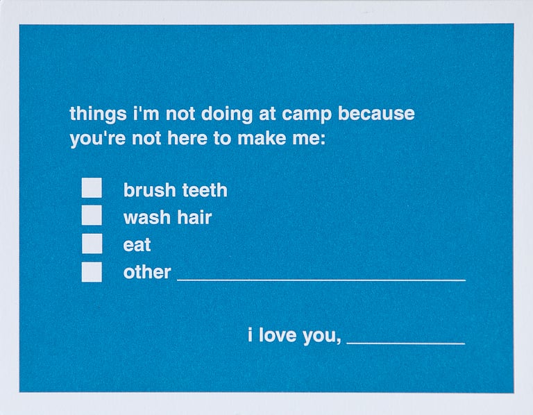 outside: things i'm not doing at camp because you're not here to make me: