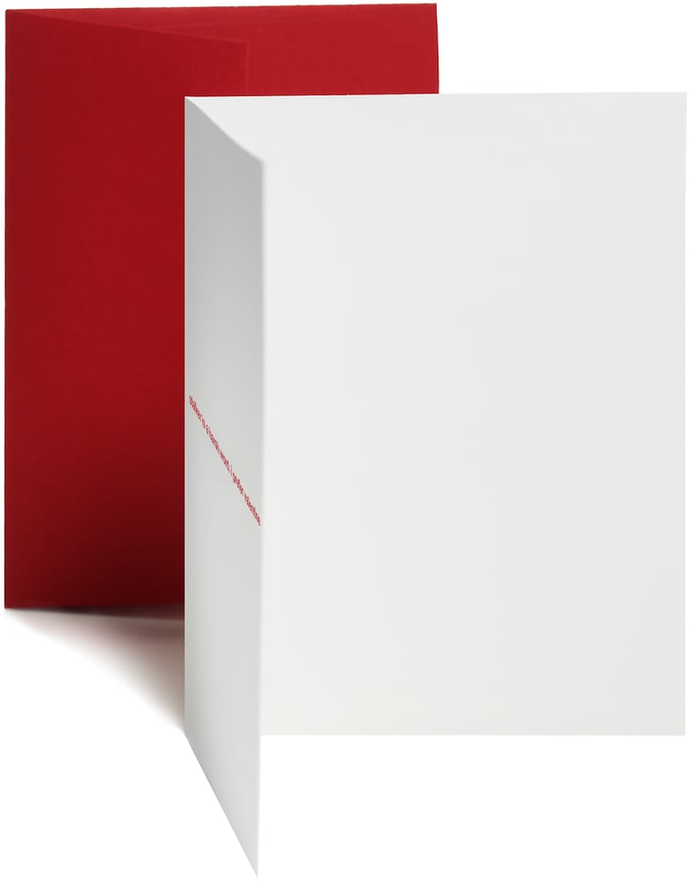 4.25 x 5.5 - heavy white stock - raised type - signature red envelope